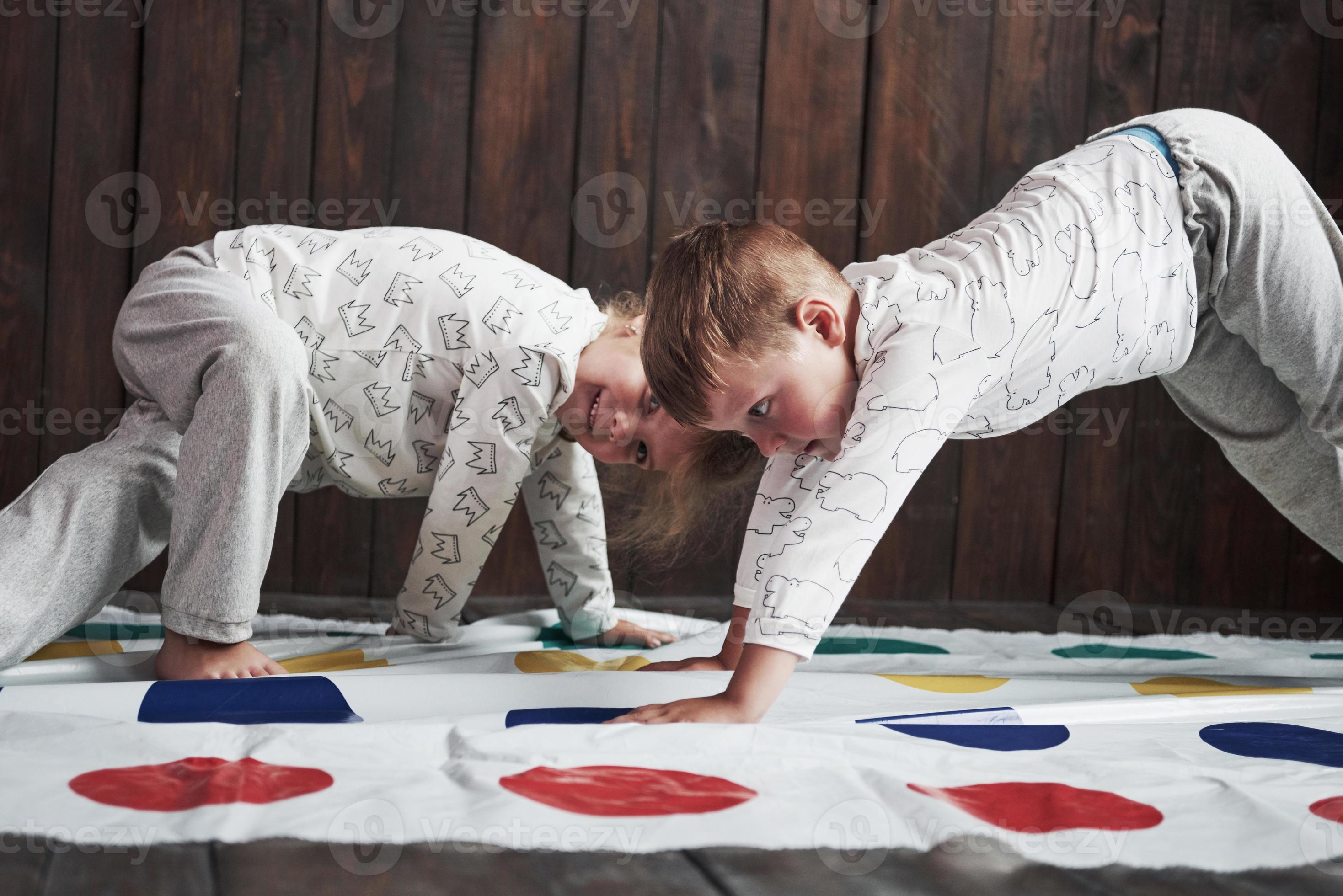 Two Of Happy Children Playing At Twister In House Brother And Sister Have A Fun Time In Holiday 3673275 Stock Photo At Vecteezy